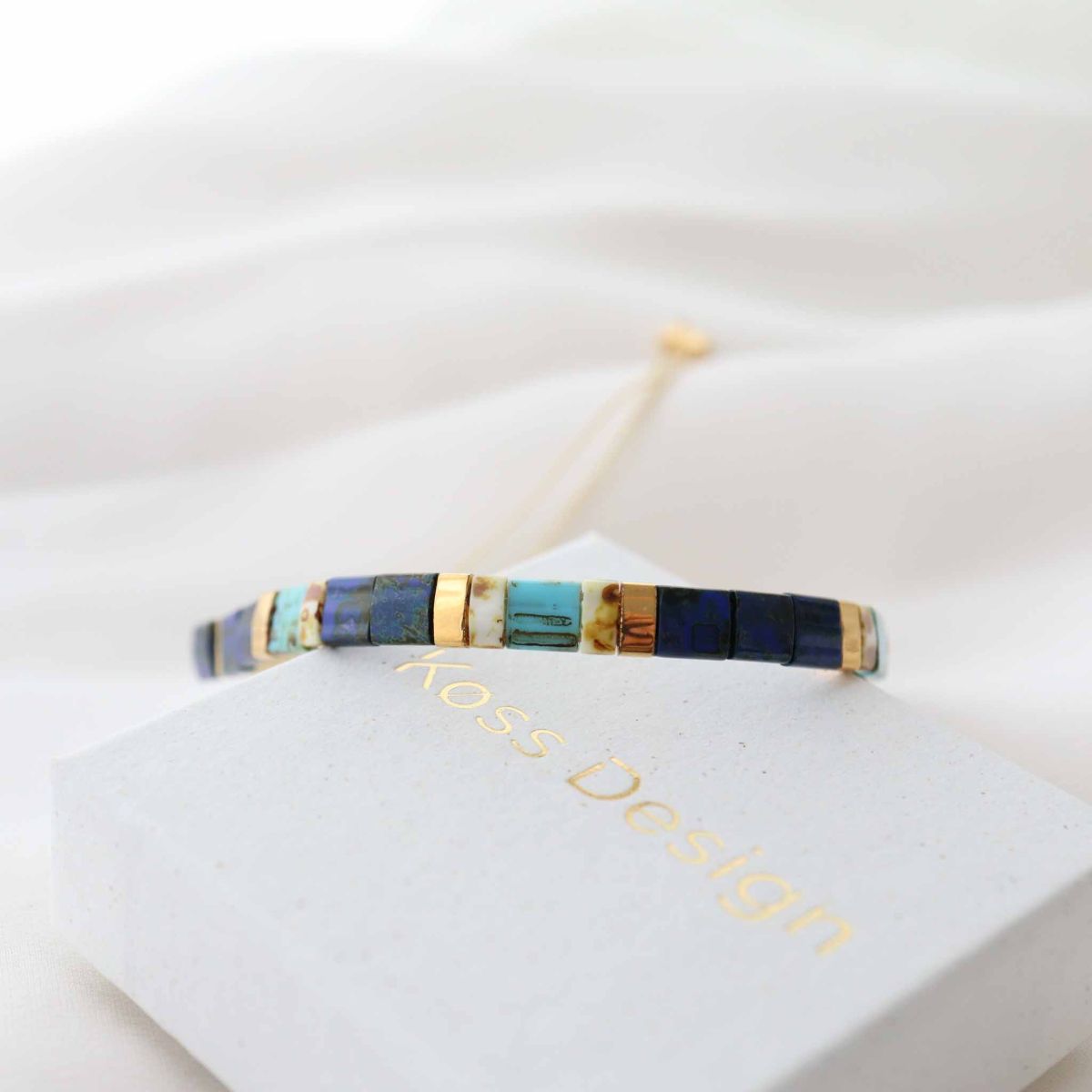 El set Lou y los pendientes Eva están hechos con cuentas japonesas. El set es encantador por sí solo o combinado con otras pulseras de perlas. Viene con 2 hermosas bolsas de Køss Design.