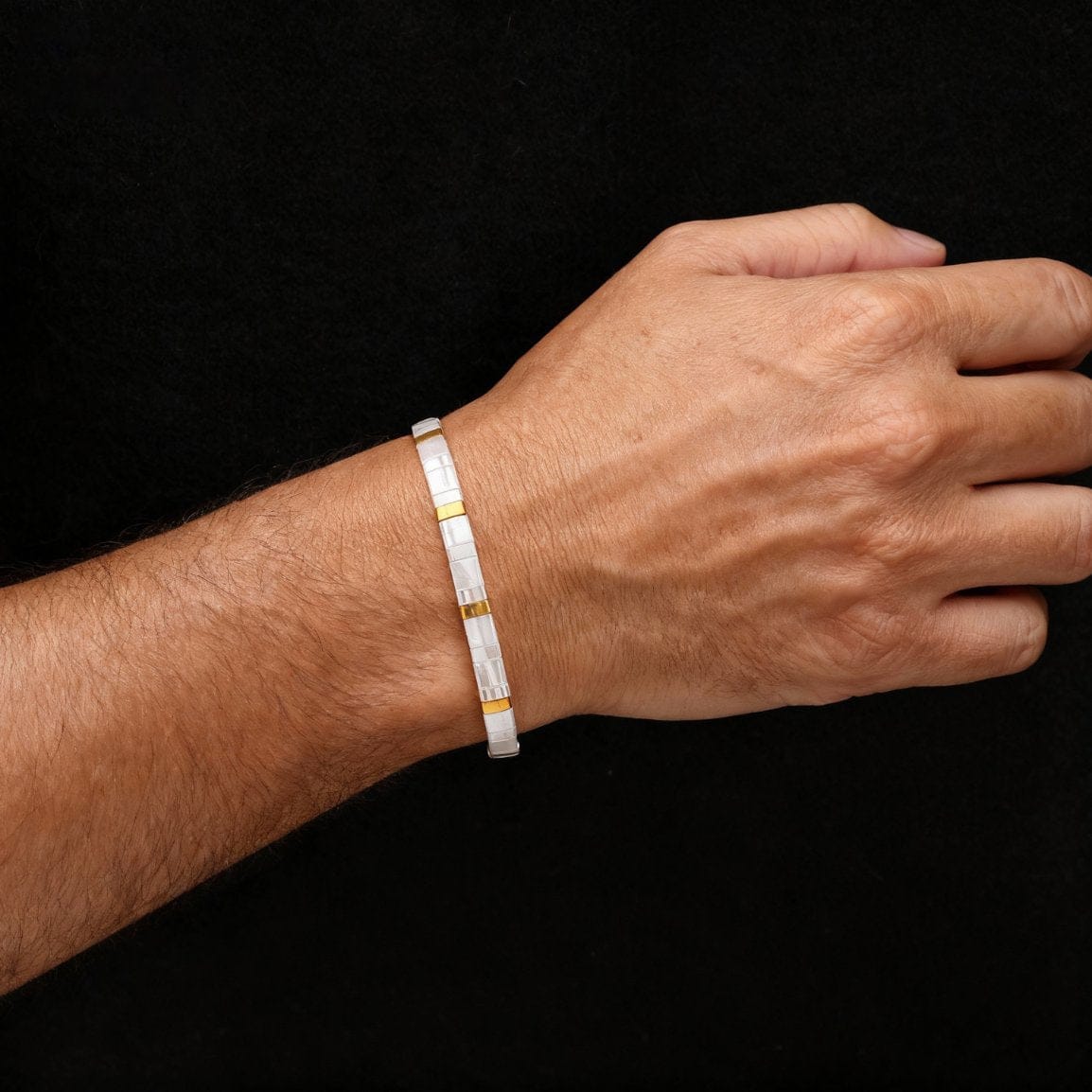 Le bracelet Neige est un modèle unique, façonné à la main avec des perles Miyuki du Japon, reconnues pour leur finesse et leur éclat subtil. Ce design lumineux est désormais disponible en tailles homme (XS/S à M).
