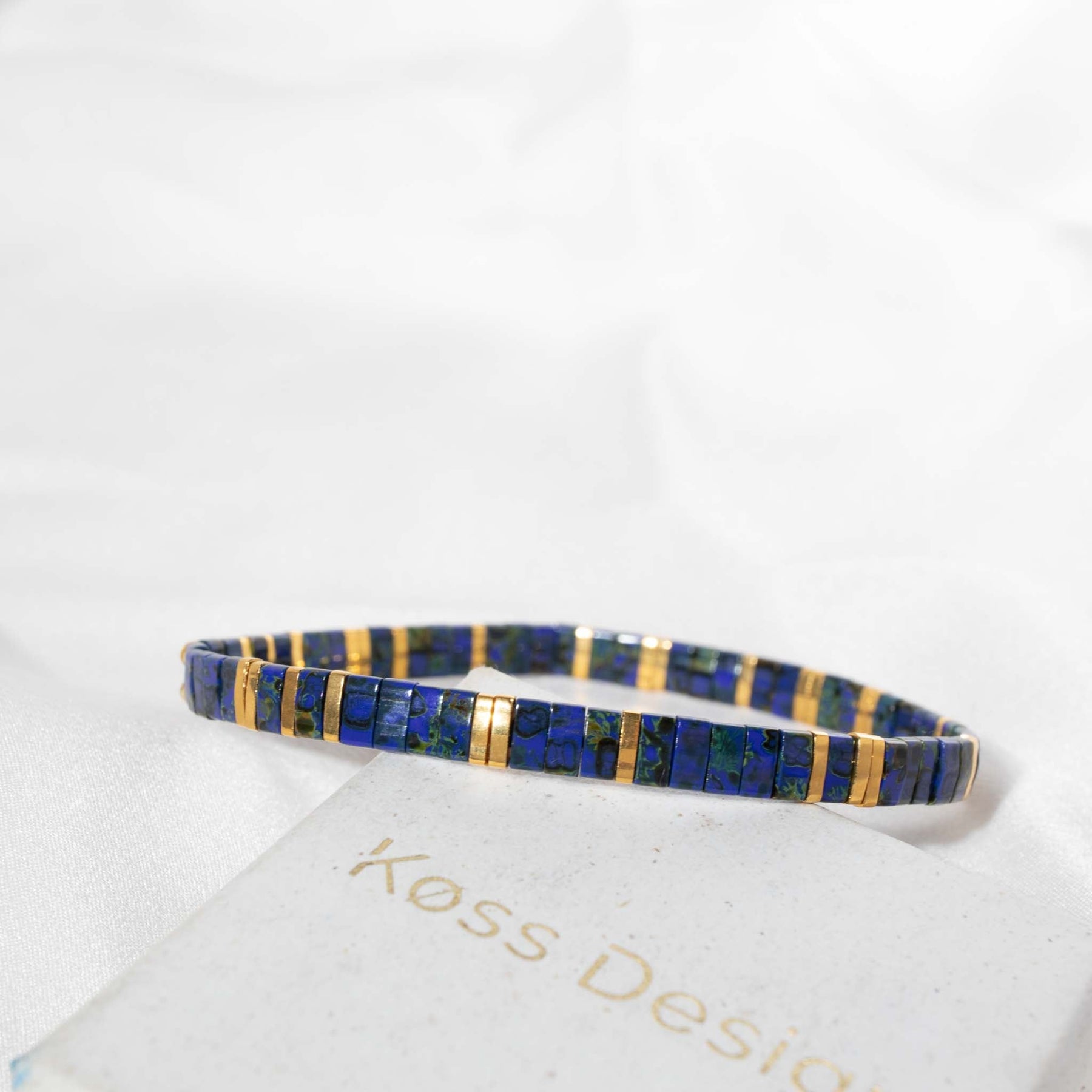 Esta pulsera de Køss Design está fabricada con suaves bandas elásticas, en las que se ensarta una sucesión de piedras japonesas. Es una pulsera muy bonita, ya sea sola o combinada con otras pulseras. Crea tu propio estilo seleccionando otras pulseras. Consigue un look único que complementará a la perfección cualquier atuendo, ya sea elegante o informal. Viene con una bolsa de terciopelo de Køss Design.