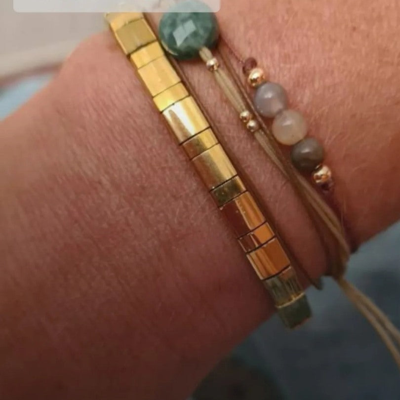 Auténticas cuentas japonesas y de acero inoxidable, chapado en oro.
