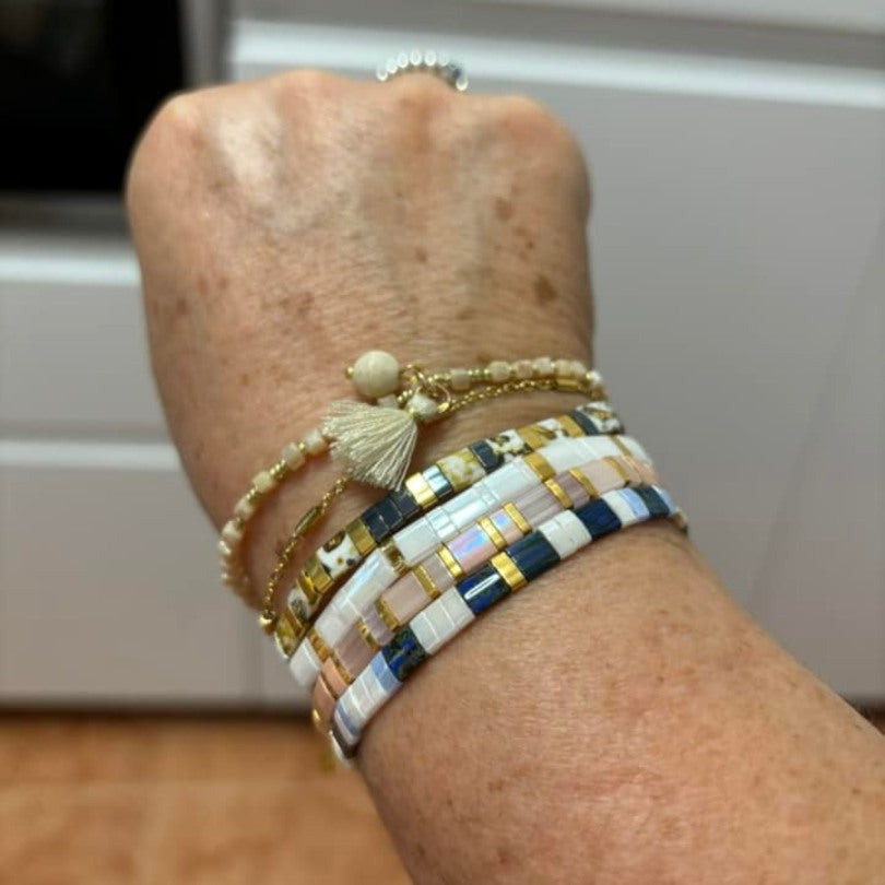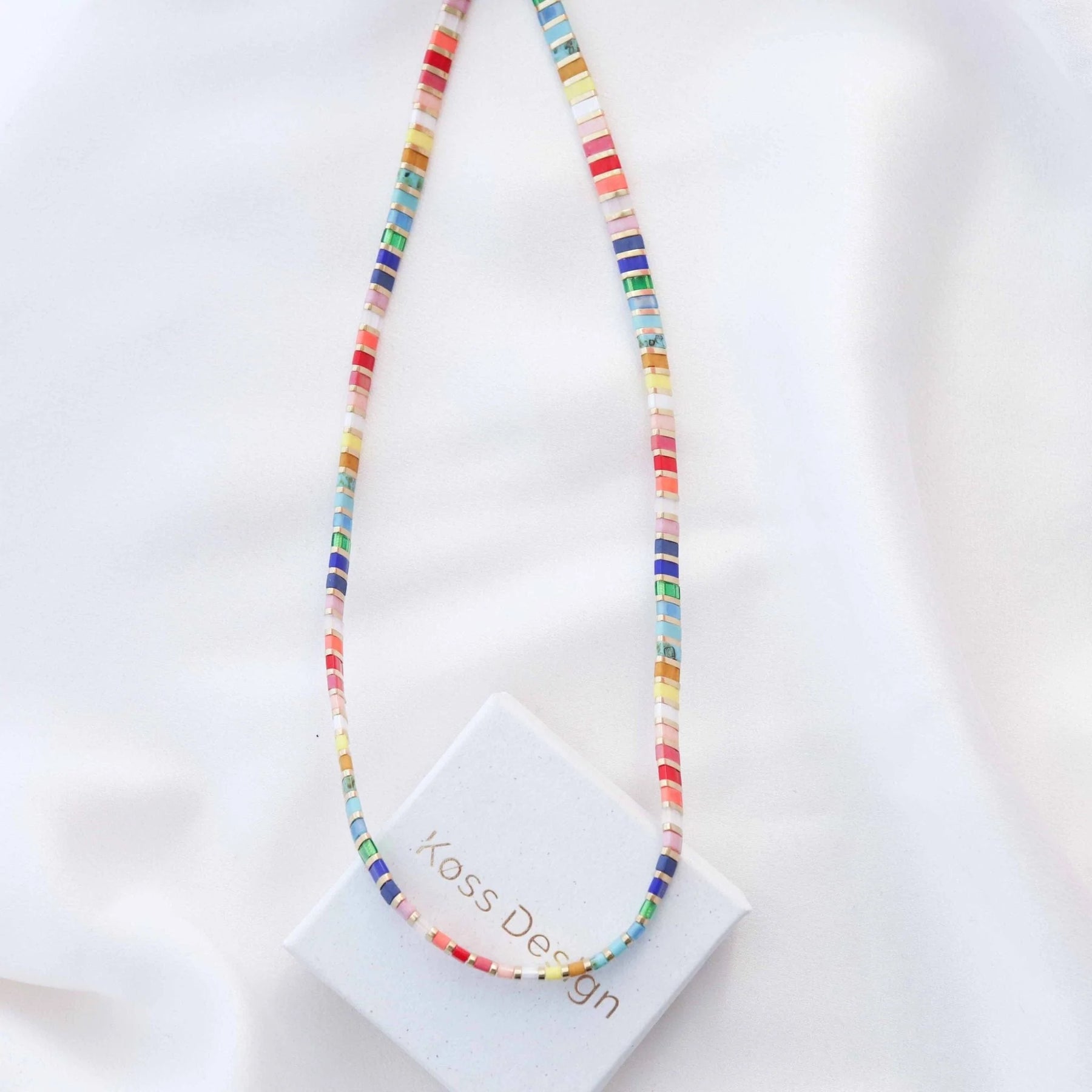El conjunto Rainbøw y el collar Liv están hechos de auténticas cuentas japonesas.