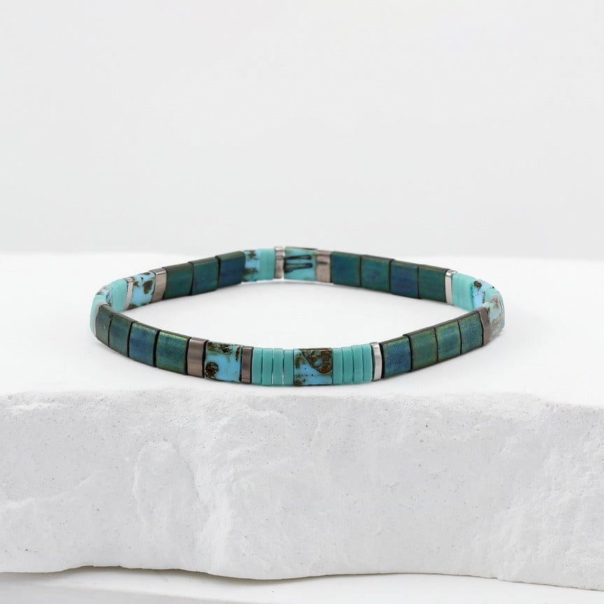 Avec ses nuances de turquoise profond, vert canard et gris anthracite, cette parure sophistiquée sublime toutes vos tenues et vous accompagne avec style en toute occasion.