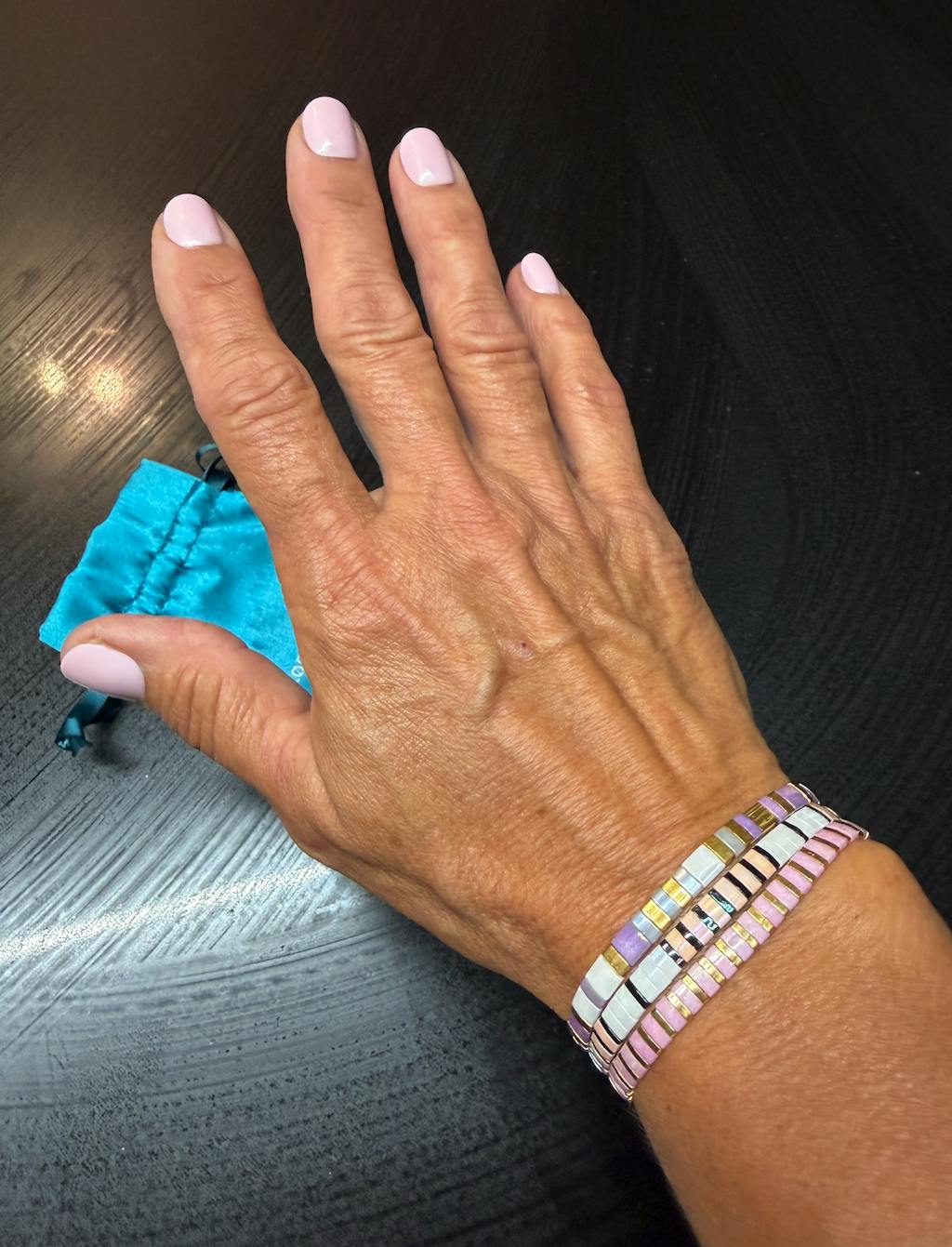 Le bracelet est exactement comme présenté en ligne (la couleur est parfaite), c’est une pièce jolie et délicate, et il se distingue des bracelets empilables classiques car les perles sont plates. Merci, je suis très contente. Le bracelet est exactement comme présenté en ligne (la couleur est parfaite), c’est une pièce jolie et délicate, et il... Le bracelet est exactement comme présenté en ligne (la couleur est parfaite), c’est une pièce jolie et délicate, et il se distingue des bracelets empilables classiques car les perles sont plates. Merci, je suis très contente.