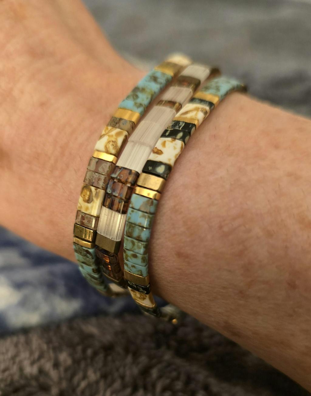 Cuentas auténticas de vidrio japonés (60 por pulsera) y chapado en oro de 18 quilates