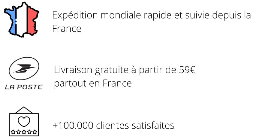 Expédition : rapide et suivie par notre partenaire La Poste depuis notre centre logistique situé en Île-de-France.