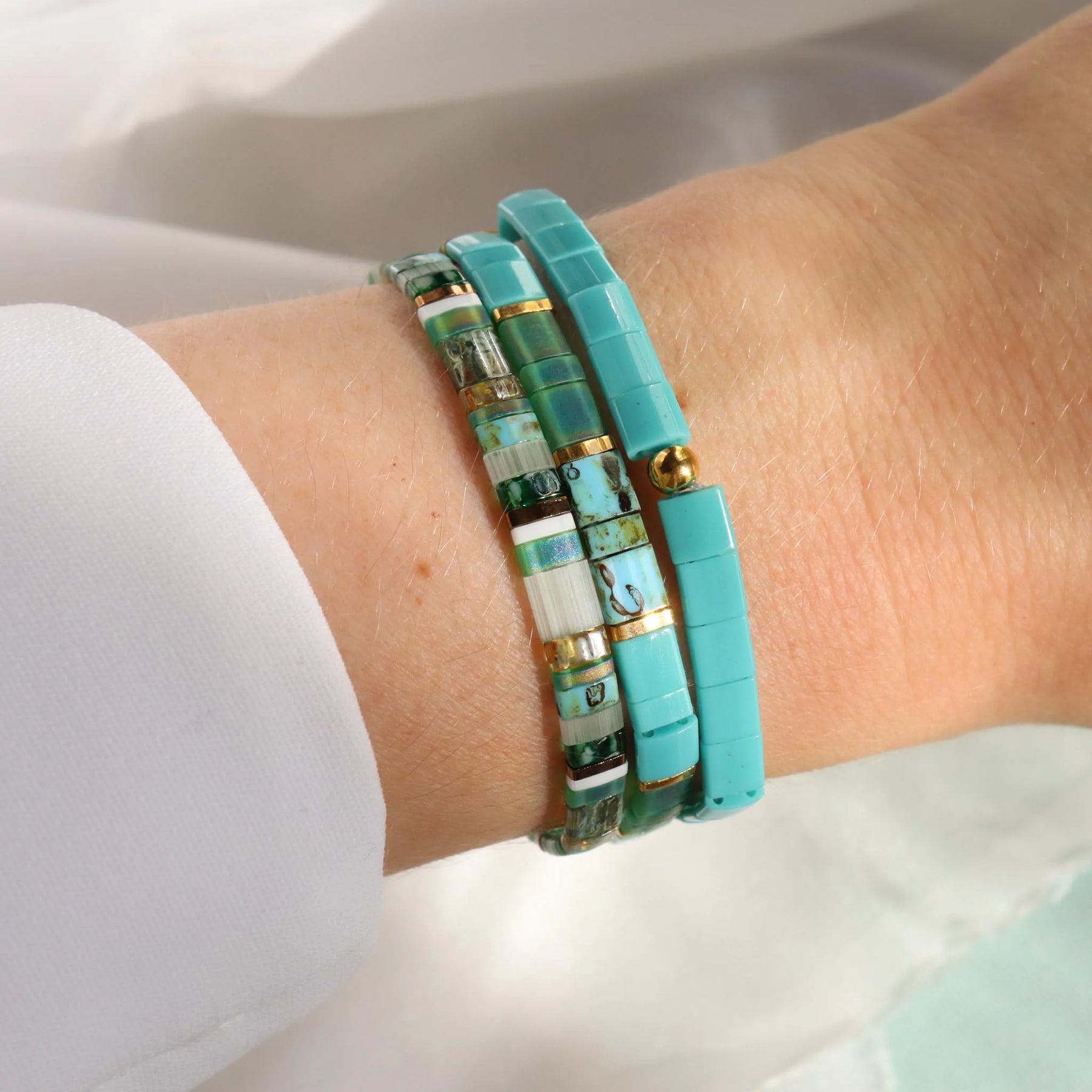 Parure Émeraude - Bracelets de perles