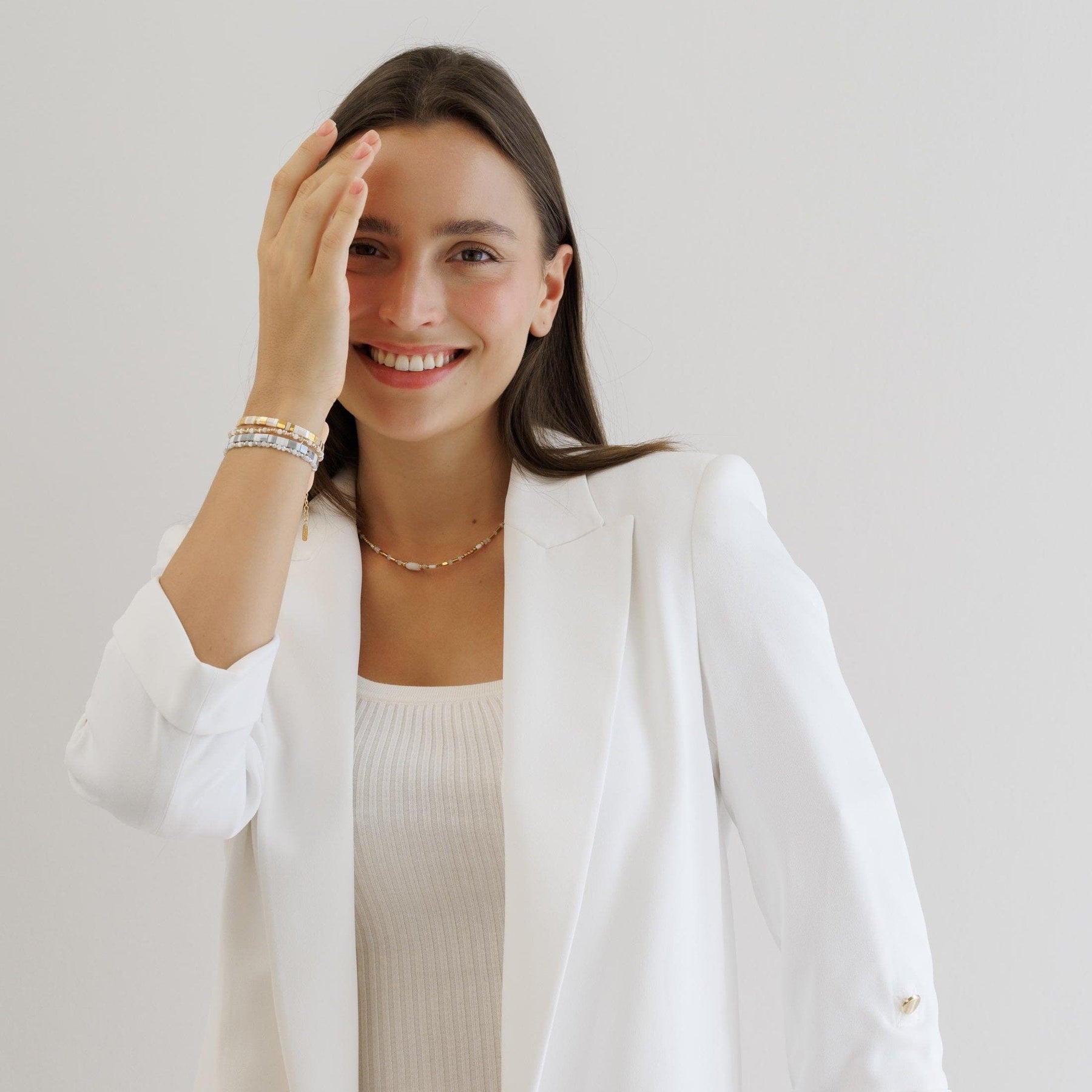 Ce nouveau collier Gotha de Køss Design est réalisé à partir de pierres naturelles, une perle naturelle et d'acier inoxydable doré à l'or fin. Il peut se porter soit ras du cou, soit plus allongé, un coup de cœur assuré.