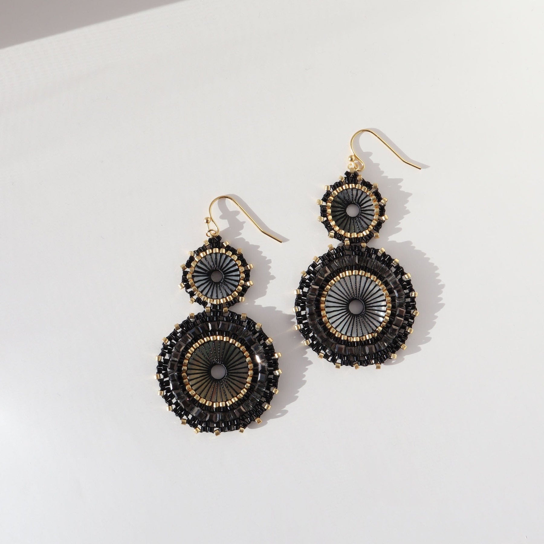 Les boucles d'oreilles noires Lise, élégantes et raffinées, sont fabriquées avec des perles en verre Miyuki du Japon.