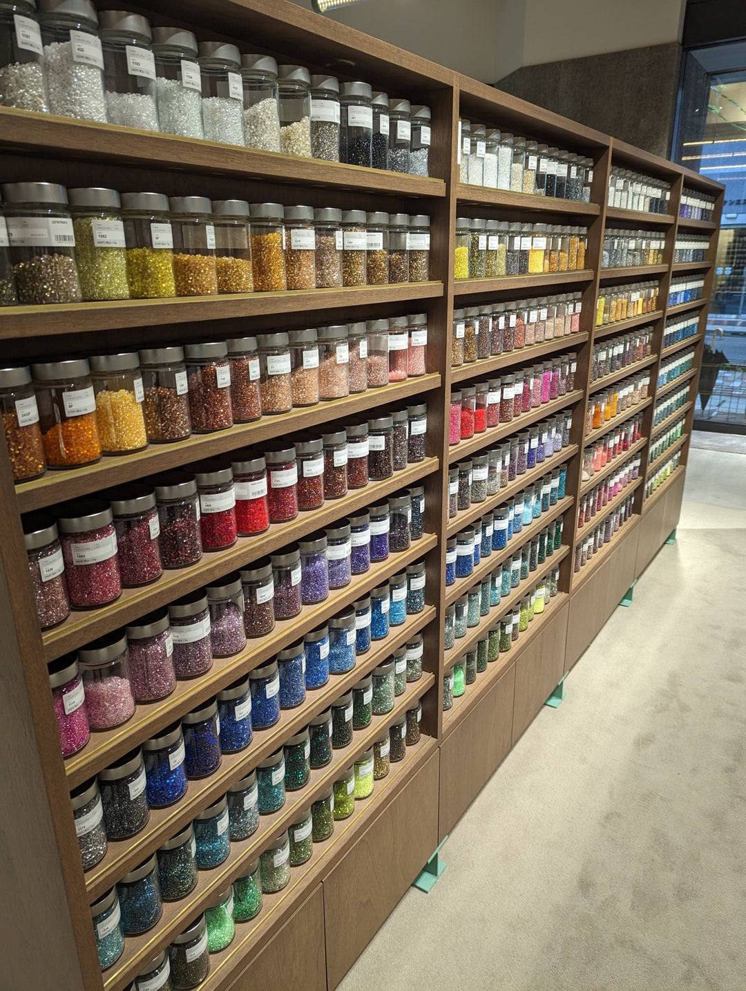 Una vez seleccionadas y compradas las cuentas, comienza el proceso de montaje. Su particular forma cuadrada de las cuentas japonesas Miyuki exige pericia para garantizar que las pulseras sean redondas en lugar de cuadradas.