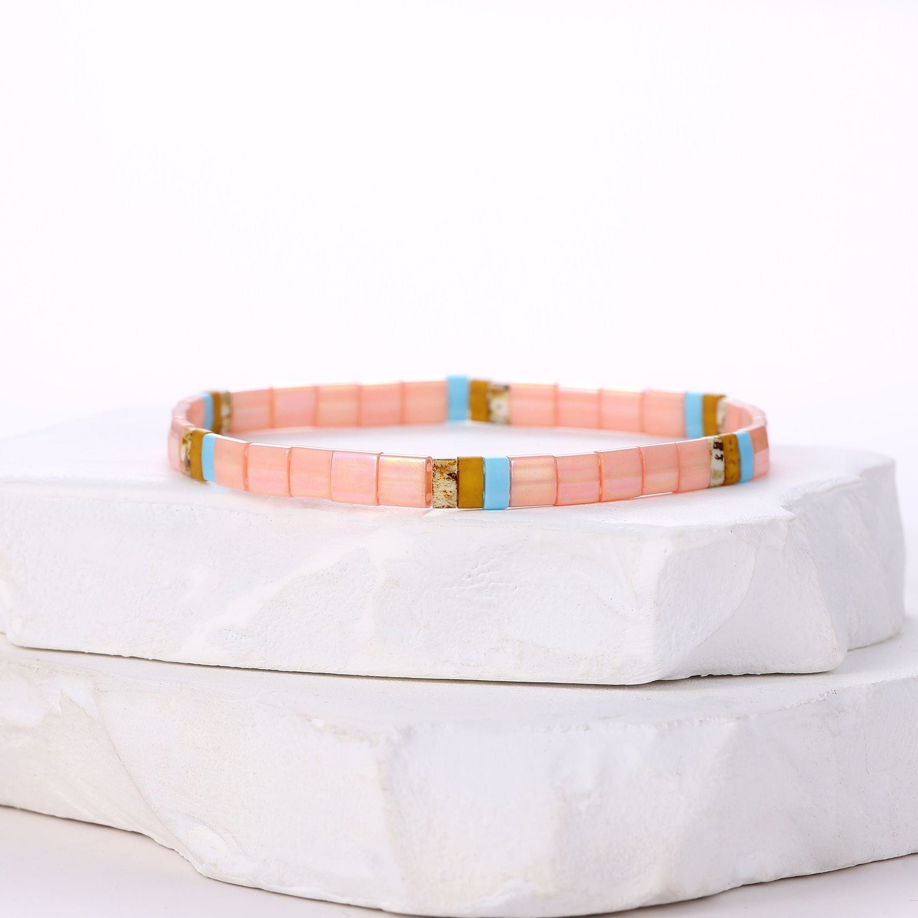 Cuentas auténticas de vidrio japonés (60 por pulsera) y chapado en oro de 18 quilates