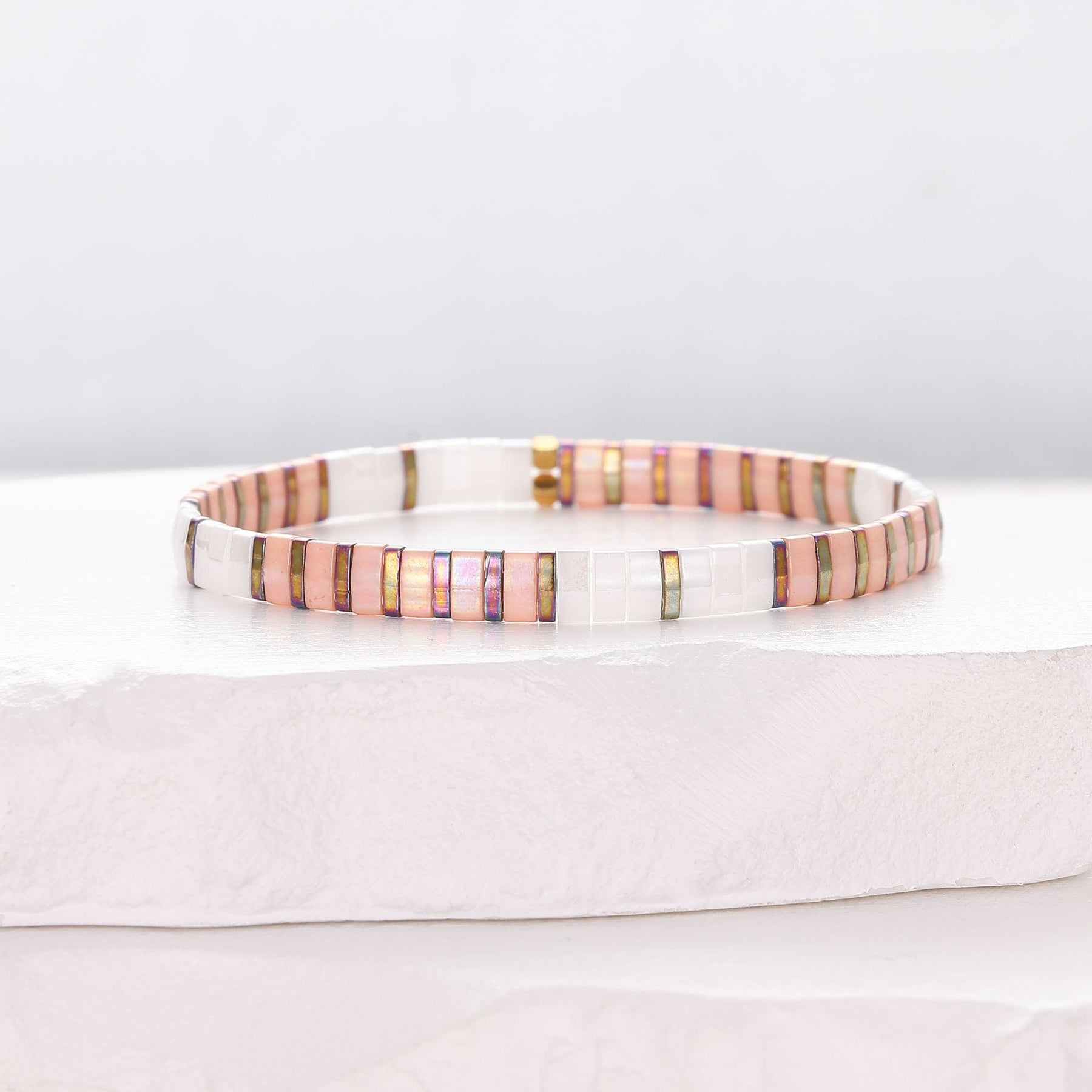 Auténticas pérolas de cristal japonês (60 por pulseira) e contas folheadas a ouro de 18 quilates