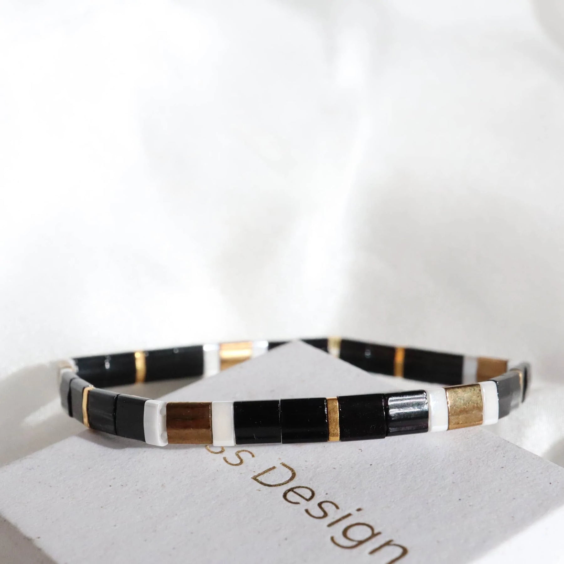 La parure noire dorée Iconic associe les bracelets Anna, Moon et Elia, réalisés à la main avec des perles Miyuki du Japon. Ce set élégant est désormais disponible en tailles homme (XS/S à M).