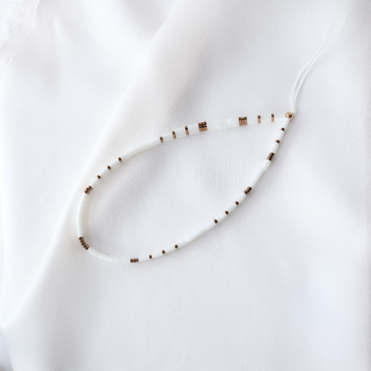 Corrente para telemóveis, compatível com todos os telemóveis e todas as capas de telemóveis. A corrente é simplesmente ligada atando um nó na parte aberta da capa para telemóveis.