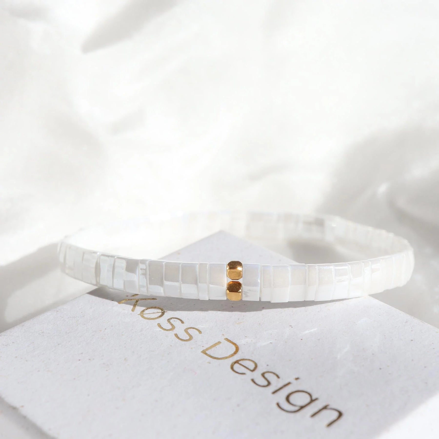 Este conjunto único de Koss Design incluye nuestras pulseras Tila y Snow, elaboradas con auténticas cuentas japonesas.